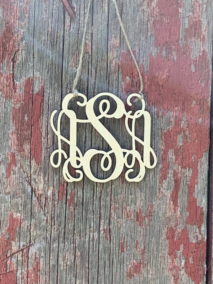 This listing is for an unpainted car rear view mirror vine font monogram hanger.