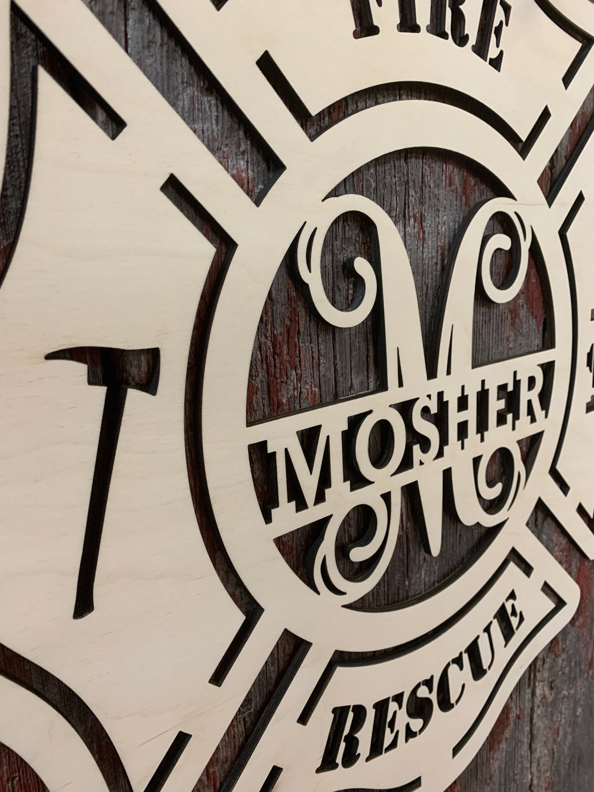 What way to show your love for your firefighter family by a custom made Maltese cross door hanger.