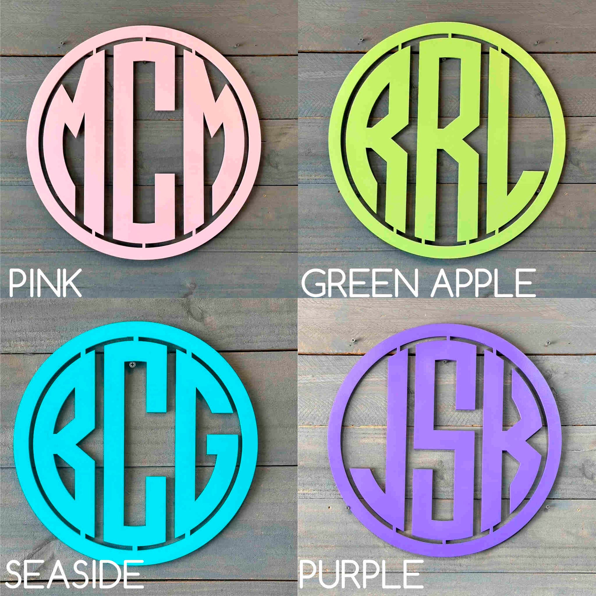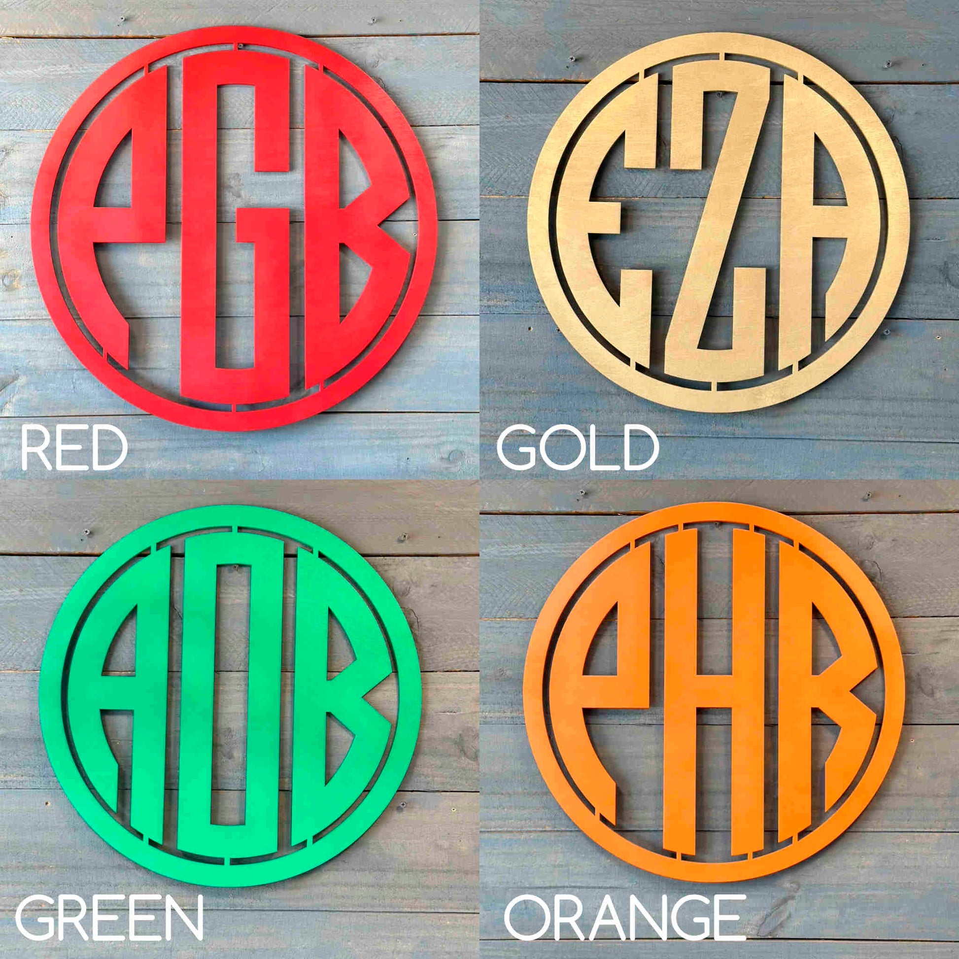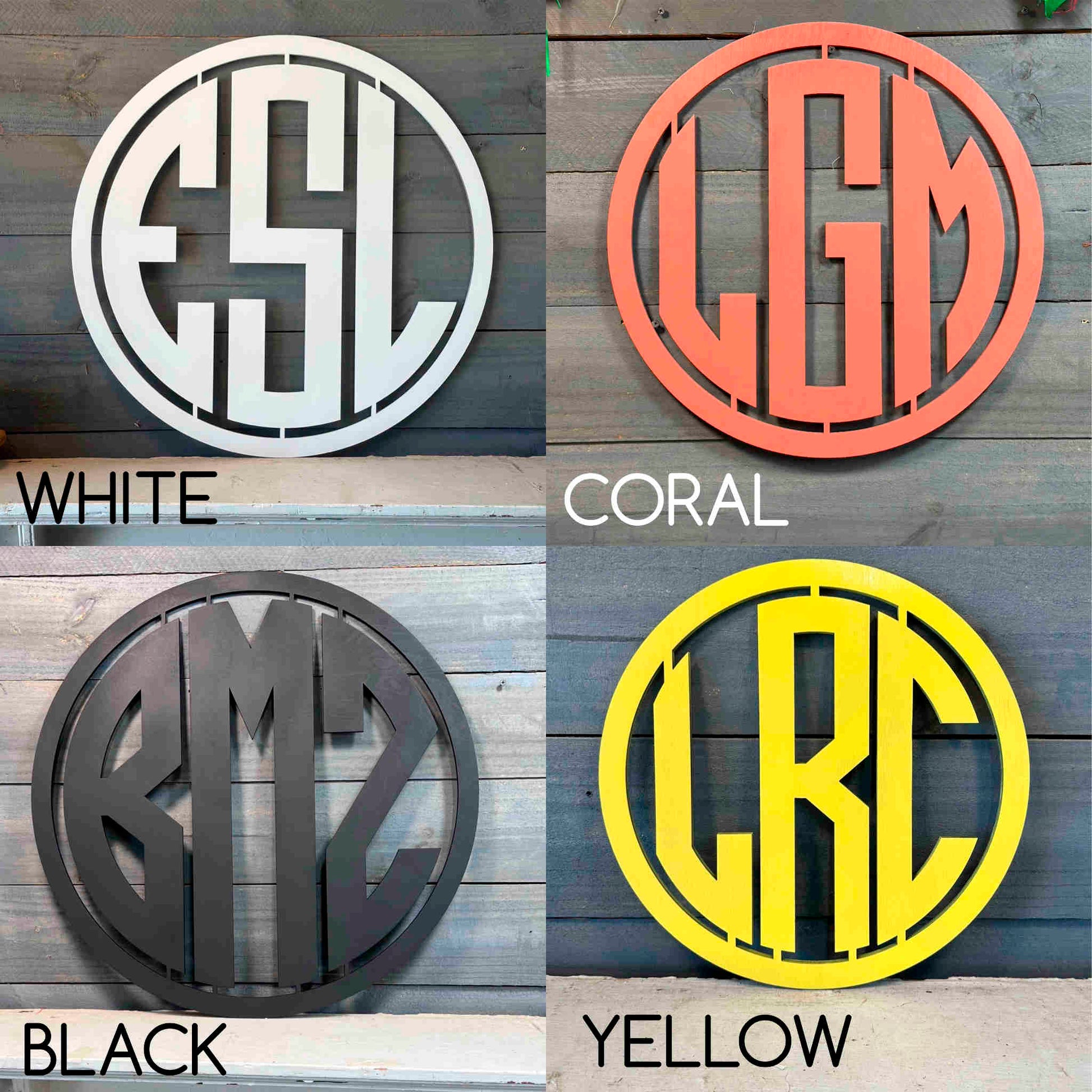 This custom block circle font monogram is expertly laser-cut from 1/4" Birch plywood and comes in sizes of 18, 20, 22, and 24 inches.