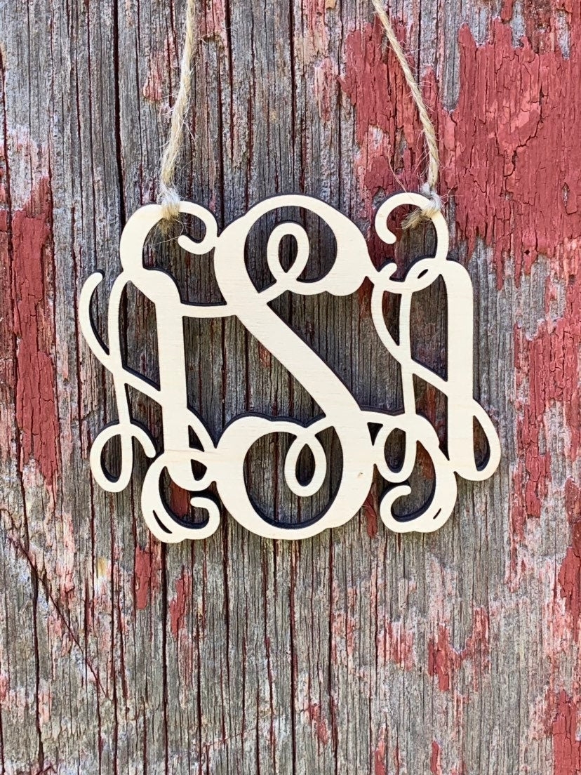 This listing is for an unpainted car rear view mirror vine font monogram hanger.